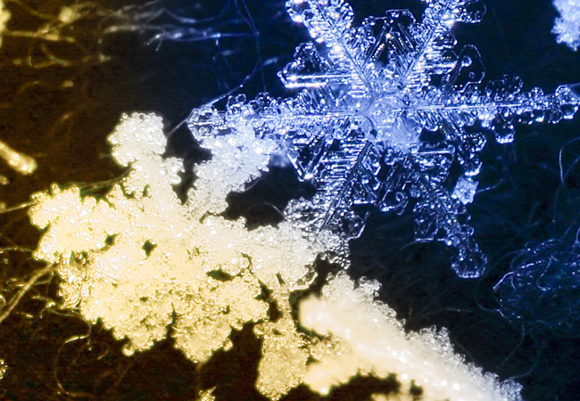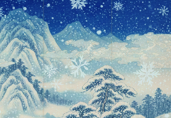 迷い込んだ雪の粒は磁石に吸い寄せられるように、みるみる屏風の黒地の部分へと集まっていく。
