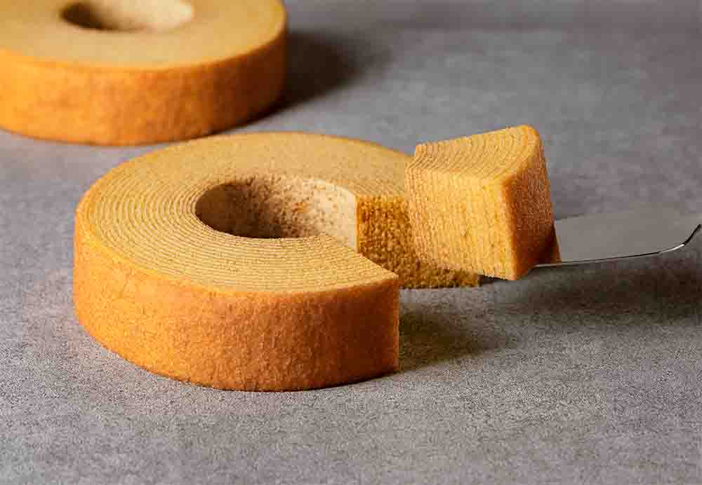 たっぷりの卵を使い、ふっくらとジューシーに焼き上げた柔らかなバームクーヘン。やさしい甘さで幅広い世代に人気です。