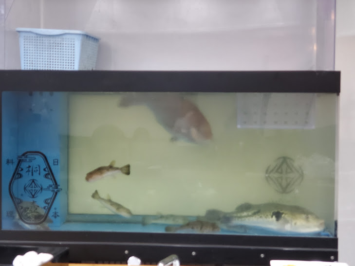 真鯛と大小取り混ぜたとらふぐが悠々と泳いでます。