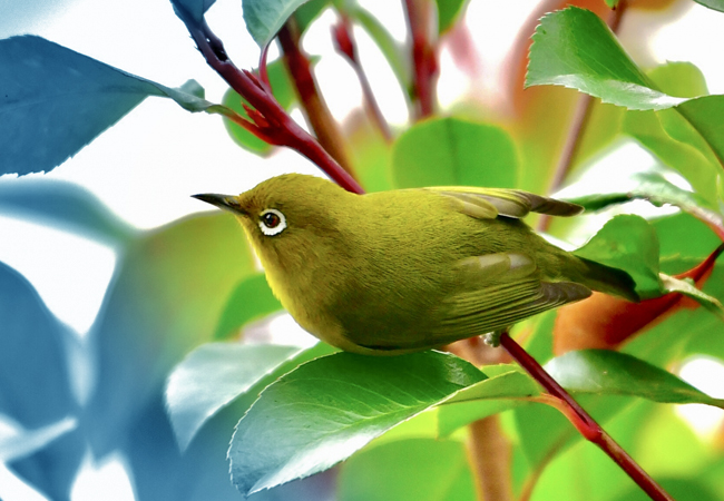 庭の椿でメジロが鳴いた。