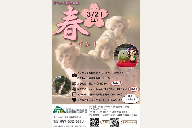 【イベント】高崎山自然動物園(大分市)で春を満喫しよう! 3/21(土) は催し盛りだくさん