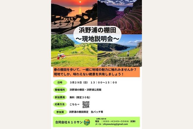 場所:浜野浦の棚田展望台、その周辺、浜野浦公民館