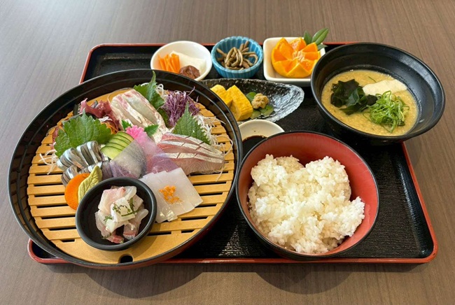2階のレストラン「デルフィーニ」も見逃せません。同市五和町二江で水揚げされた海の幸を中心に、天草の新鮮な魚介類をたっぷり使った「刺身定食」(2,400円)や「海鮮丼」(2,200円)、「あらだき定食」(2,200円)など、天草のおいしい恵みを堪能することができます。「お子様ランチ」(1,300円)や手軽なうどんメニューも人気があります。