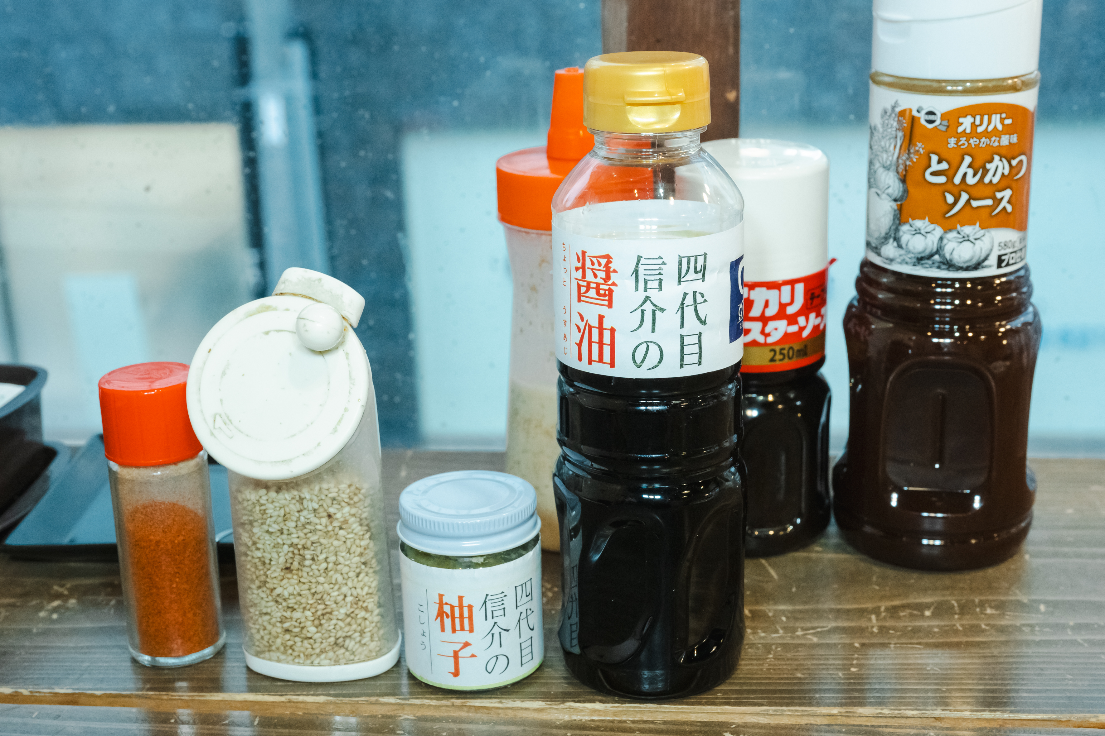 テーブルには同店オリジナルのしょうゆや柚子(ゆず)ごしょうなどが並んでいるので、お好みで“味変”しながら本格豆腐を味わえます。