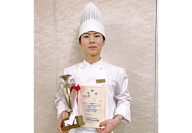 最高賞は、洋食調理課の原田響さん(23)。甘じょっぱく温かいフレンチトーストのような「パンペルデュ・サレ」に鴨(かも)やサーモンを添えた一品。香り、食感、温度差を楽しめるのが高く評価されました。「味の対比を楽しめる中に、一体感も出せたので良かった」と振り返りました。