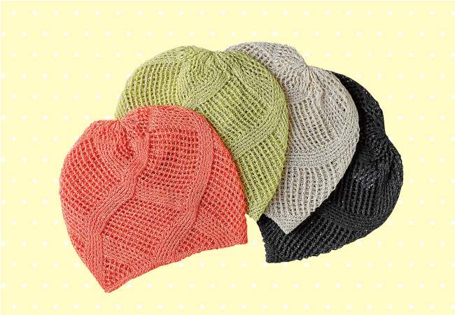 ペーパー素材を含んだ風通しのいい春夏向けのニット帽子。深くかぶったり、浅くかぶったり、お好みでアレンジできる。グリッターのキラキラ感が華やか。