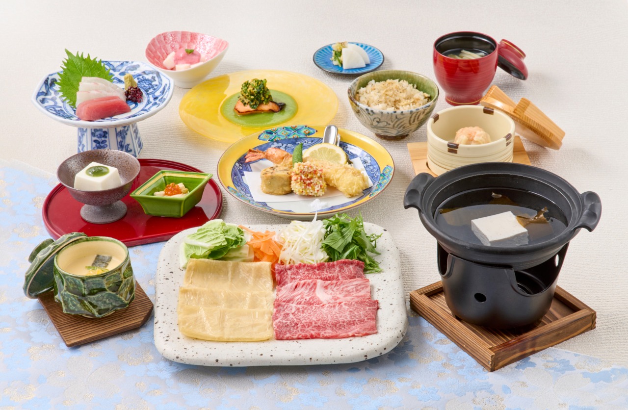 今年の春は、2種類の特別懐石が登場します。いずれも桜鯛と金目鯛のしゃぶしゃぶや蓮根まんじゅう 桜海老あん掛け、筍としらすの炊き込み御飯など、春らしい食材を贅沢に使ったコース構成。梅の花ならではの湯葉・豆腐料理も随所に光ります。