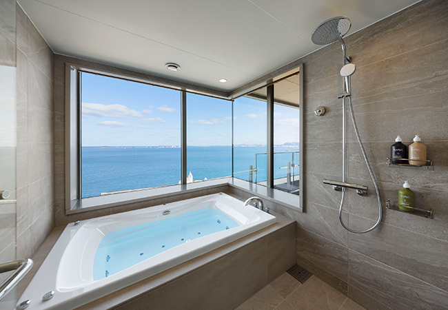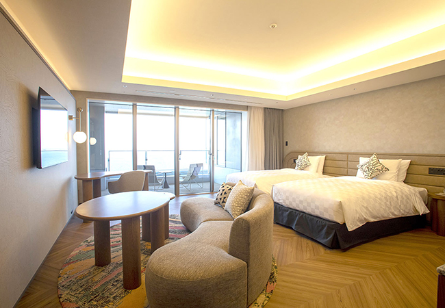229室ある客室は、全室オーシャンビューのぜいたくな空間。5~16階のスタンダードフロア(189室)は平均32㎡の広々とした設計で、リラックスして滞在を楽しめます。