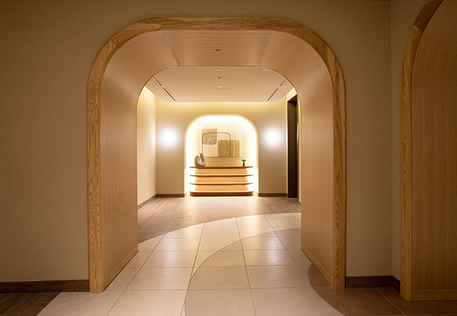 館内で共通しているのは、「つなぐ」という意味が込められたアーチ状の内装デザイン。ロビーやレストラン、廊下にもアーチがあり、高級感を演出しつつ、丸みを帯びたフォルムがモダンな印象を与えます。