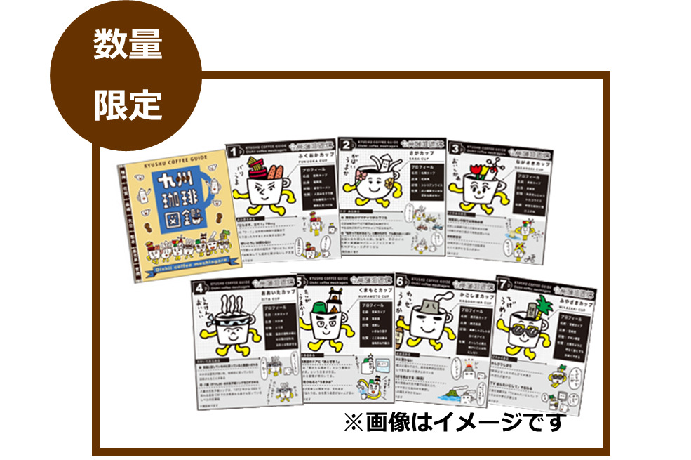 賞品:全8種(図鑑表紙デザイン1種、九州各県デザイン7種) 内容量:ドリップバッグ珈琲 1袋 価格:324円(税込) 販売店舗:銘品蔵全店 URL:https://www.jr-retail.co.jp/business/meihingura/ ※写真はイメージです。
