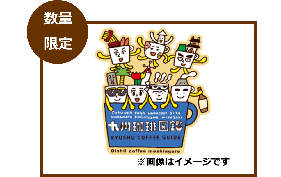 さらに、発売を記念した購入特典も用意されています。 第一弾は、3袋以上購入すると、キャラクターたちが集合したオリジナルステッカーを先着でプレゼント。各県の個性が詰まったデザインで、なくなり次第終了となります。 第二弾は、4月6日(月)スタート。銘品蔵やキヨスクで、スタッフおすすめのお菓子と「九州珈琲図鑑」を含む税込2,000円以上購入すると、「九州珈琲図鑑」1袋がもらえるキャンペーンです。お菓子と一緒に楽しむ、ちょっと特別なコーヒータイムを演出してくれます。