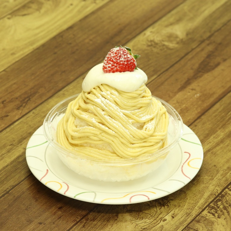かき氷「白熊」の発祥店として知られる「天文館むじゃき」がイートインコーナーに登場。鹿児島県産のさつまいも「シルクスイート」のペーストをモンブラン風にたっぷりのせた「鹿児島県産シルクスイートのモンブラン白熊」(1杯1,100円)は、今回の催事限定メニューです。