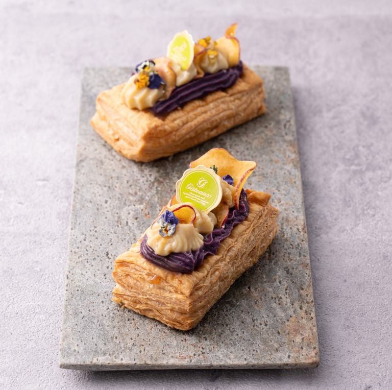 さつまいものスイーツはほかにも。屋久島の小さな集落「栗生」で生まれたベーカリー「くりおのくらし」は、バニラ・ラム酒・アーモンドの香りをまとった鹿児島県産さつまいものパイ(1点650円)を提供。