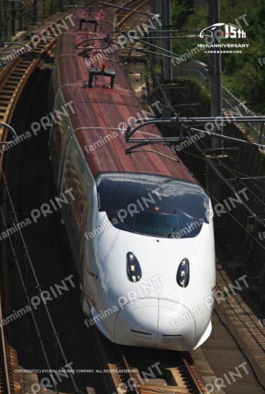 九州新幹線全線開業15周年を記念した特別仕様のブロマイドが、全国のファミリーマート店舗に設置されているマルチコピー機サービス「ファミマプリント」で発売されます。10種類のデザインから好みのブロマイドを選んで印刷できるスタイルで、L判200円(税込)、2L判300円(税込)、シールL判400円(税込)、シール2L判600円(税込)でそれぞれ購入可能です。