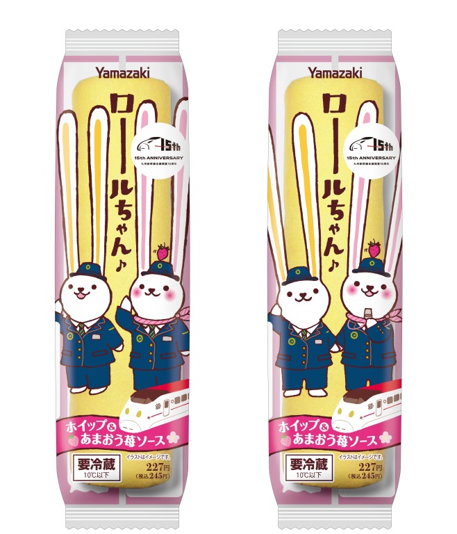 スイーツでは、人気の「ロールちゃん」が15周年限定パッケージで登場し、福岡県産あまおう苺の濃縮果汁を使ったソースとホイップクリームを組み合わせた「ロールちゃん(ホイップ&あまおう苺ソース)」(税込245円)が数量限定で発売されます。