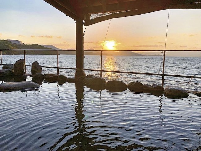 天然丸太を使用した、日本最大級の校倉(あぜくら)づくりログハウスが特徴。大村湾を一望できる露天風呂は開放感バツグン。源泉かけ流しの炭酸水素塩泉はリピーターも多く、上質な湯に癒やされると評判です。