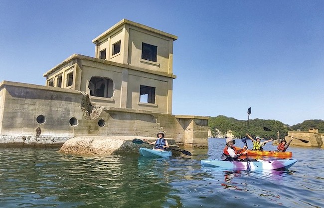 ちょい乗り(50分)、冒険(80分)、満喫(120分)の3コース。海神神社や岩くぐり、国の有形文化財「魚雷発射試験場跡」など見どころ盛りだくさんのコースをカヤックで巡ります。