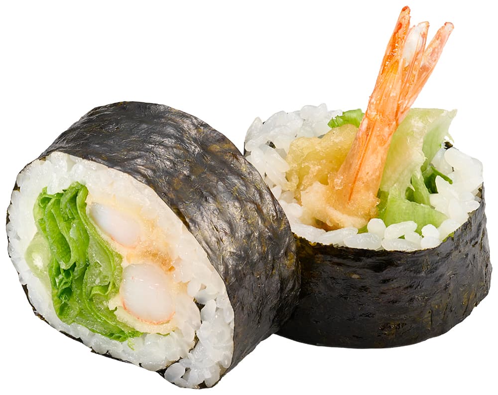 ※愛知県・岐阜県・三重県の店舗、スシロー道頓堀店では「レタス巻(上えび天入り)」(税込260円~)を販売。