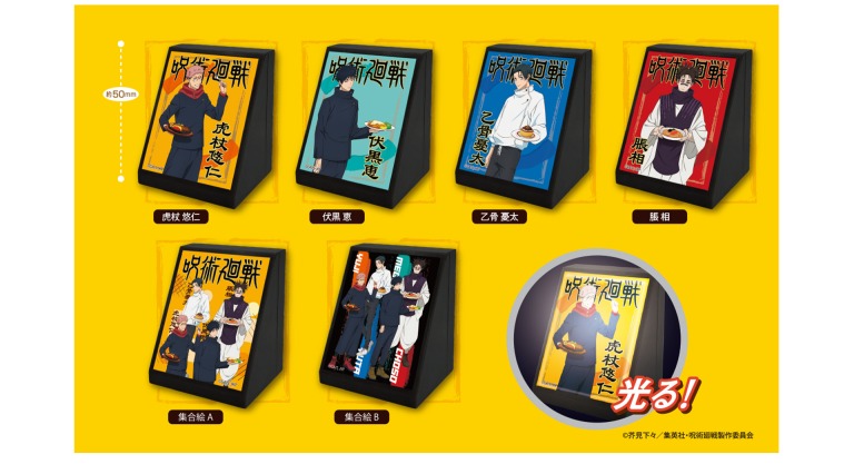 コラボ実施店舗では、「ライティングディスプレイコレクション」(全6種、1回500円)のオリジナルカプセルトイも販売されます(数量限定、一部店舗を除く)。店舗入口付近には全3種の「コラボ記念パネル」が設置されるなど、店内もコラボ仕様に彩られます。