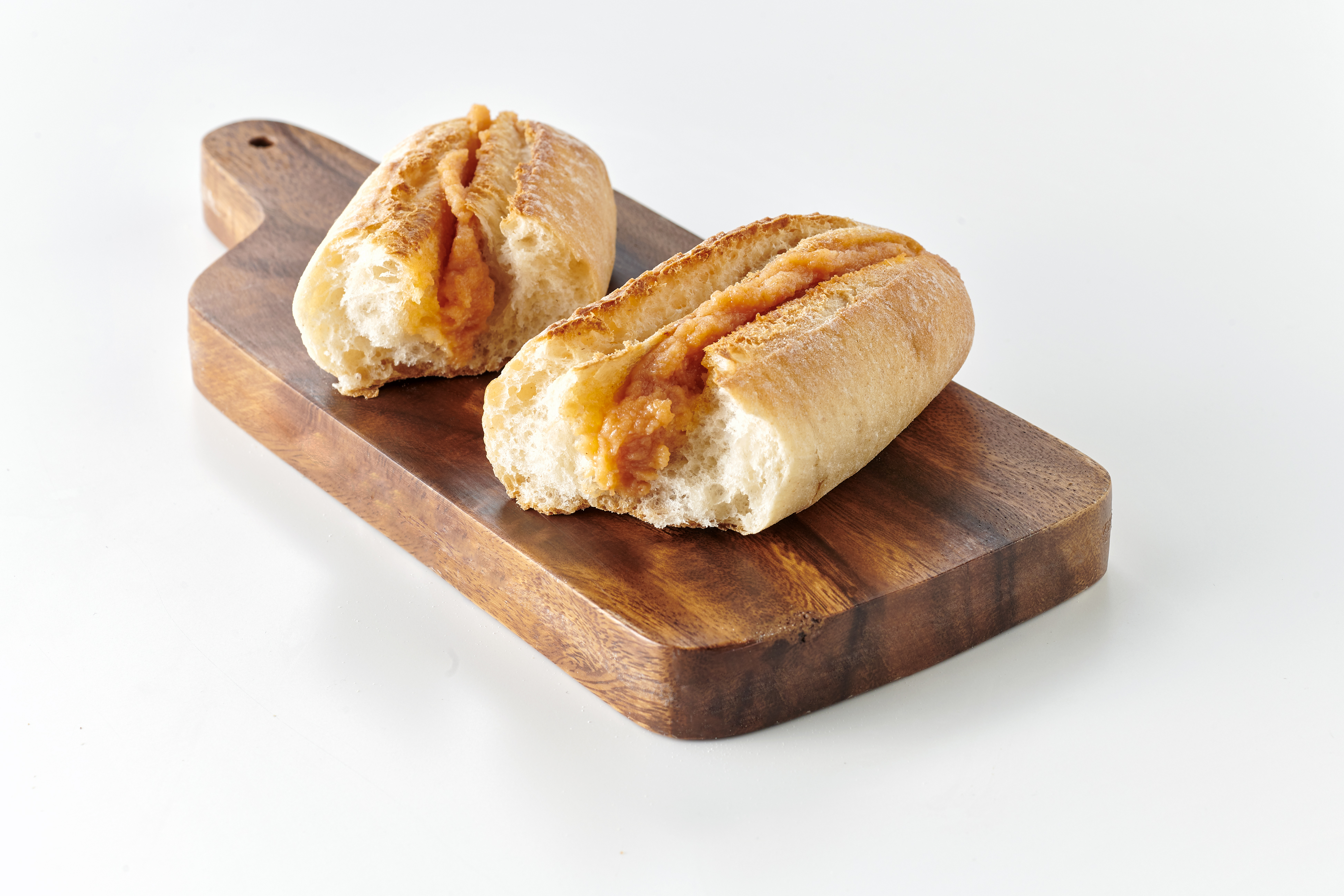 ハード系のめんたいフランスが多い中、同店の「明太フランス」はふわっと軽い口当たりでパクパク食べられるのが特長。上品な辛みなのでキッズからシニアまで幅広い世代の人が購入していくのも納得の味です。