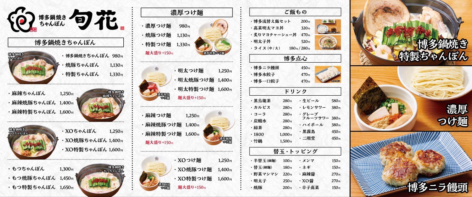 「旬花」は、かつての「長崎ちゃんぽん 旬」の店主とともに開発を重ね、伝承の味をベースに誕生したちゃんぽん専門店。ラーメンやうどんに続く、福岡の“次の麺文化”として「博多ちゃんぽん」を提案しています。
