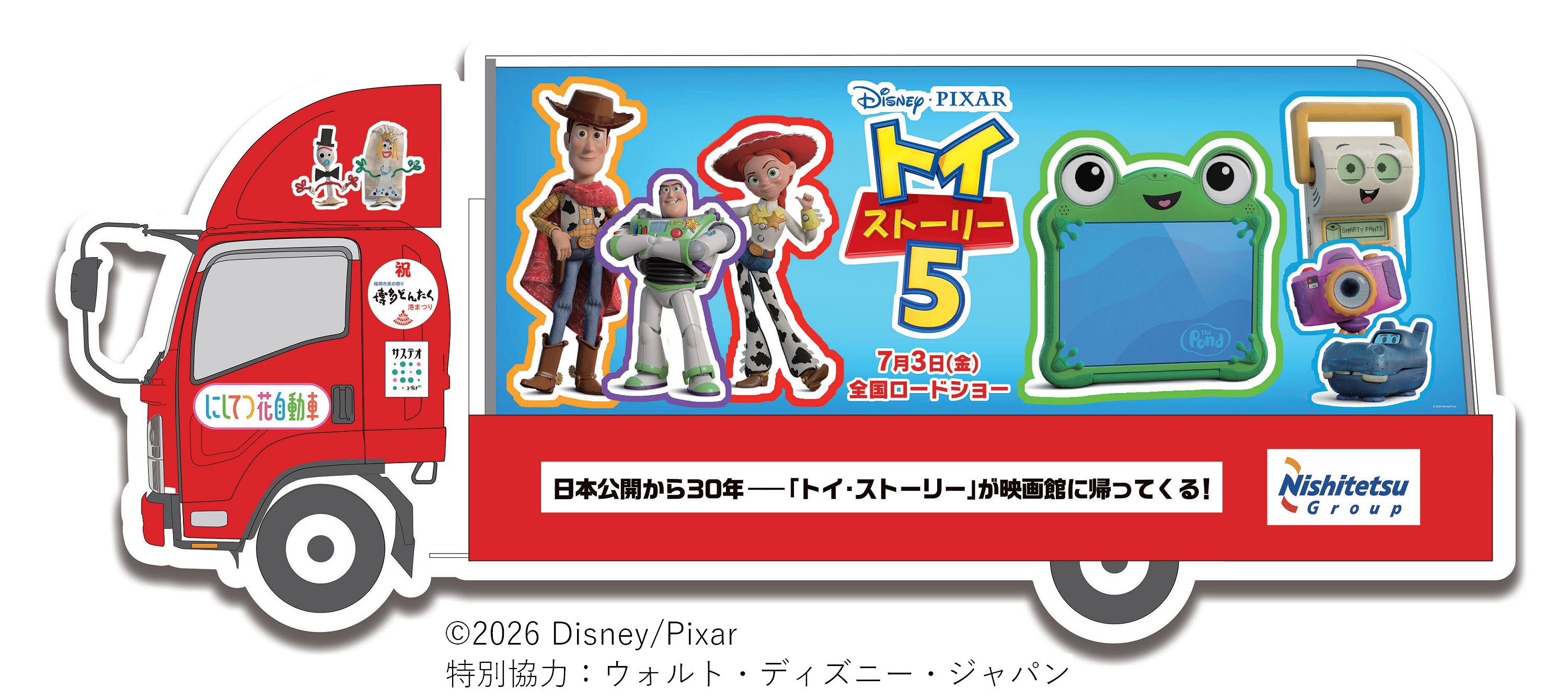 ウォルト・ディズニー・ジャパンの特別協力により、「トイ・ストーリー5」の公開を記念して、「トイ・ストーリー」の仲間たちが花自動車に登場します。