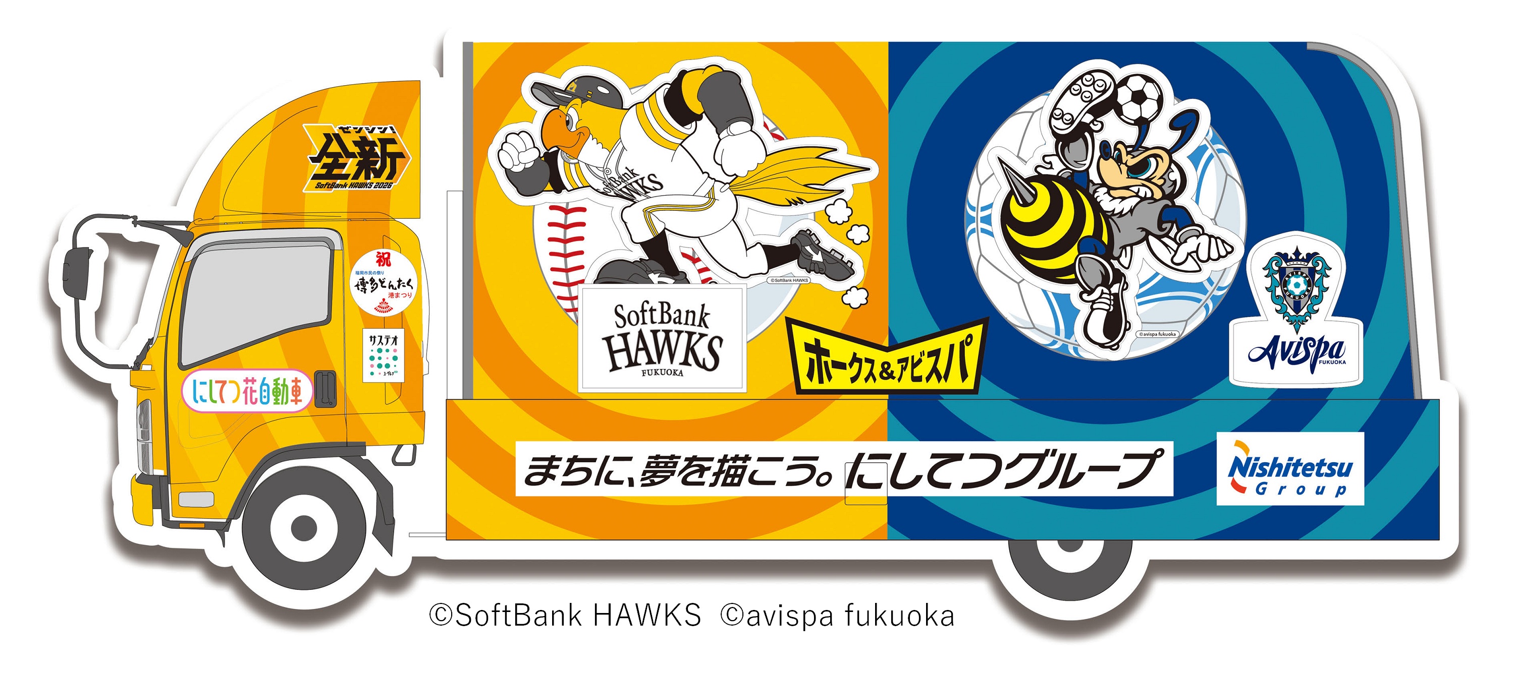 第65回福岡市民の祭り「博多どんたく港まつり」の開催にあわせ、2026年5月2日(土)~4日(月・祝)の3日間、「にしてつ花自動車」3台が福岡市中心部を運行します。期間中は街なかを周回するほか、恒例の「どんたくパレード」にも参加。福岡ソフトバンクホークス&アビスパ福岡の定番デザインに加え、注目の展覧会コラボキャラや大人気映画シリーズ最新作とのタイアップなど、今年も見逃せないラインアップです。