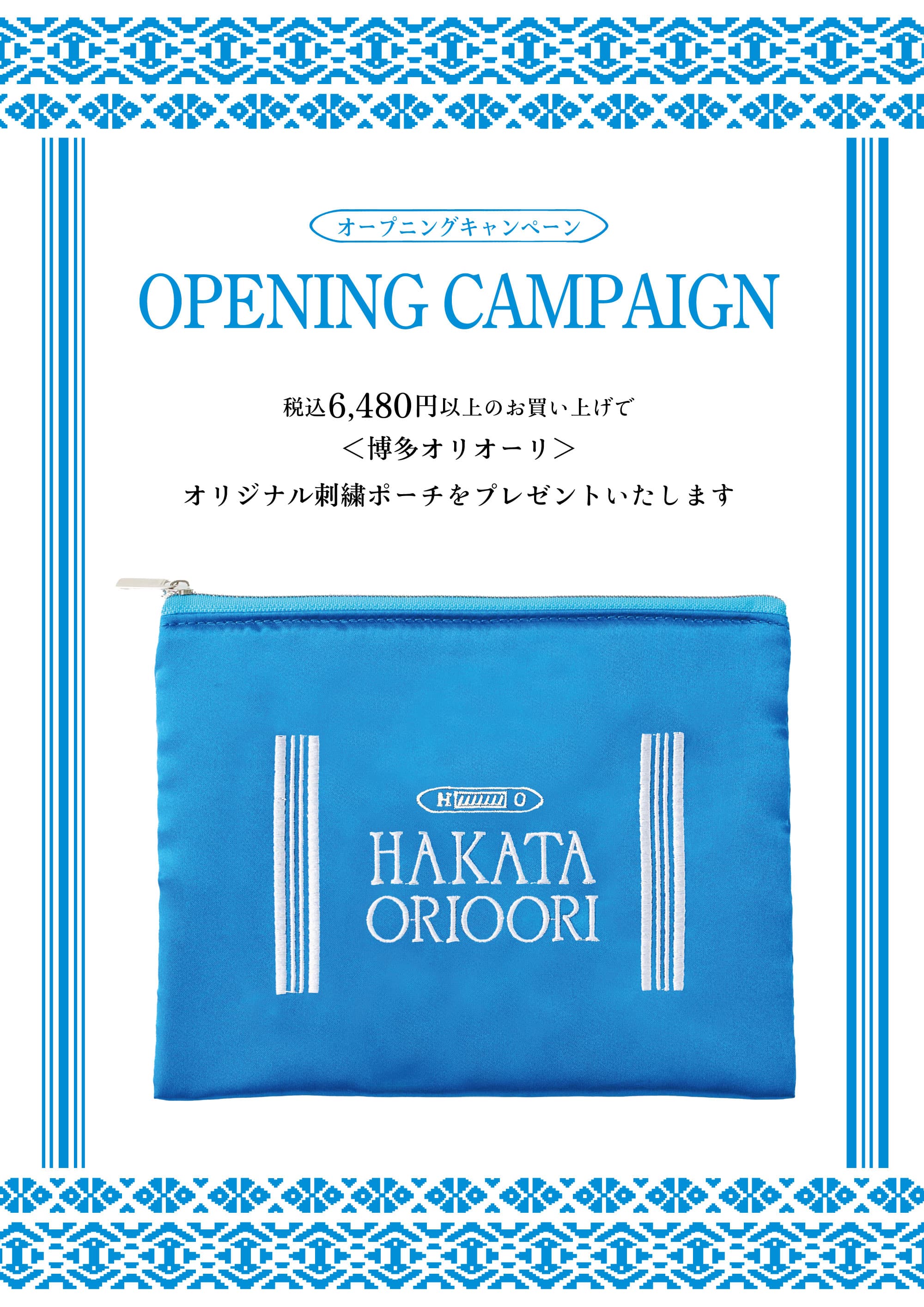 また、オープン日の5月20日(水)から、税込6,480円以上購入した人には、献上柄の親子縞をあしらったオリジナル刺繍ポーチをプレゼント。数量限定のため、なくなり次第終了となります。
