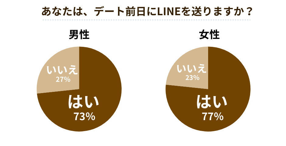 「デート前日にLINEを送りますか?」という質問では、7割以上の人が送ると回答しています。