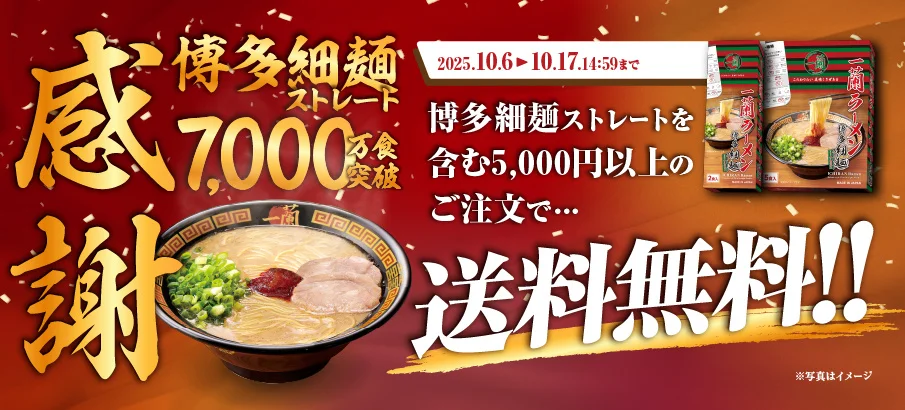一蘭ラーメン 博多細麺ストレートが7,000万食突破!期間限定で送料無料キャンペーン開催【10/6~10/17】
