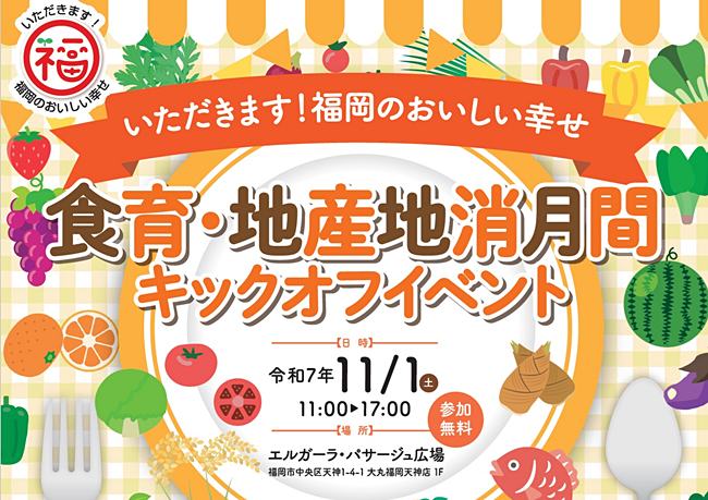 【11/1天神で開催】福岡の食の魅力を体感できる!「食育・地産地消月間キックオフイベント」