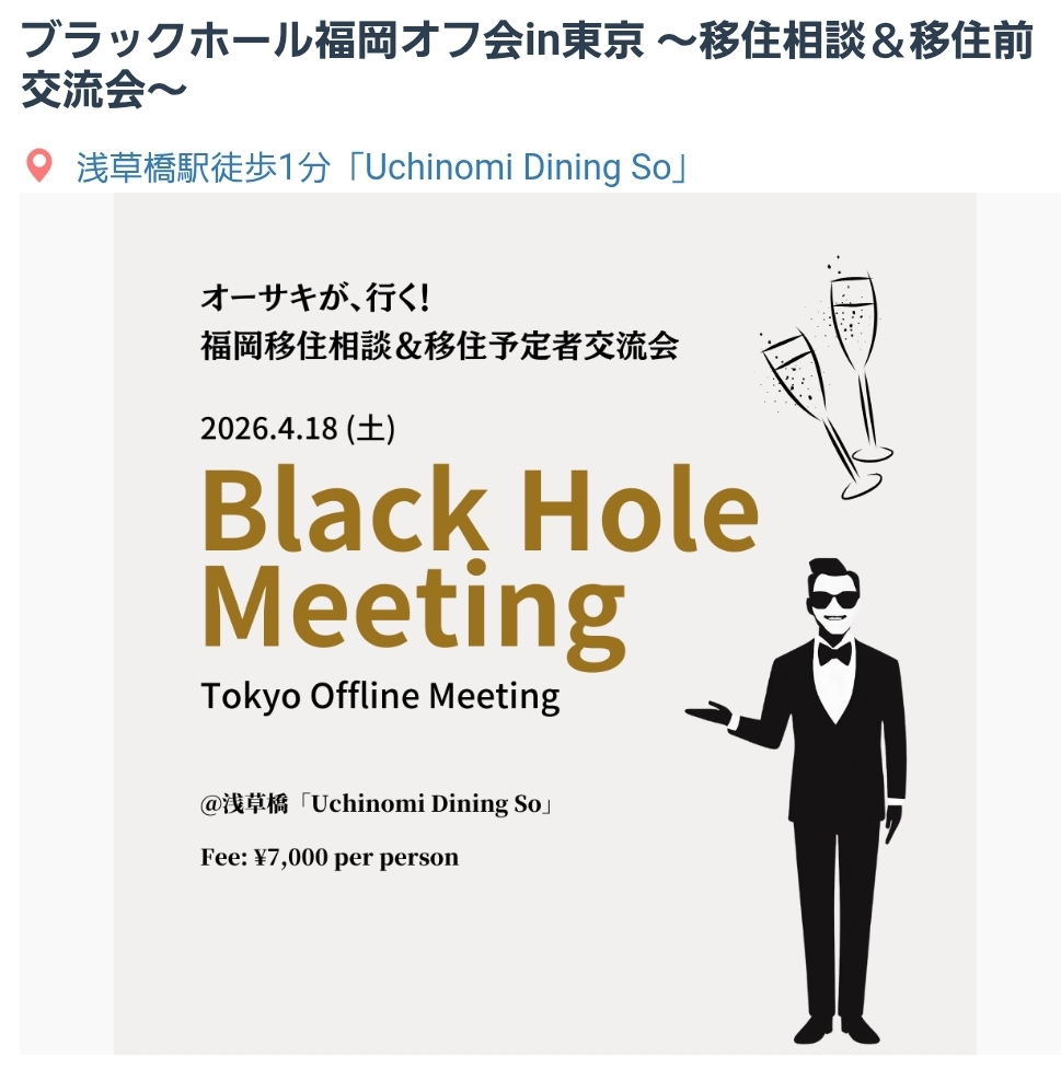 東京で福岡移住相談&交流会 参加者絶賛募集中 4月18日(土)浅草橋にて ☆久留仁譲二の小市民だより☆