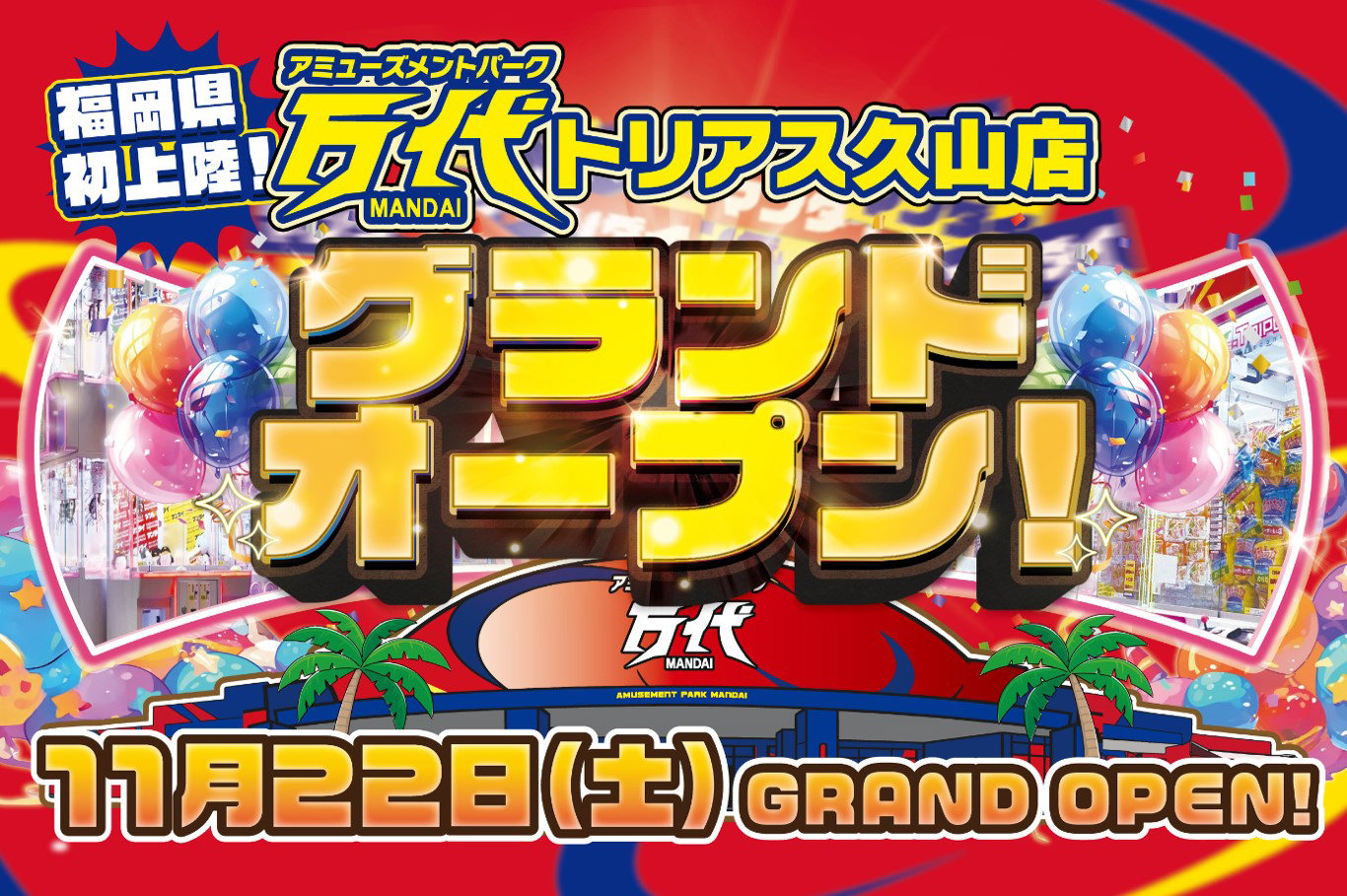 福岡初上陸!クレーンゲーム320台以上 「アミューズメントパーク万代トリアス久山店」 11 月22 日(土) オープン